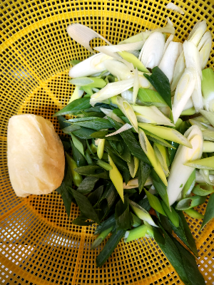 그사이 대파를 썰어두고 마늘을 찌어놓습니다.